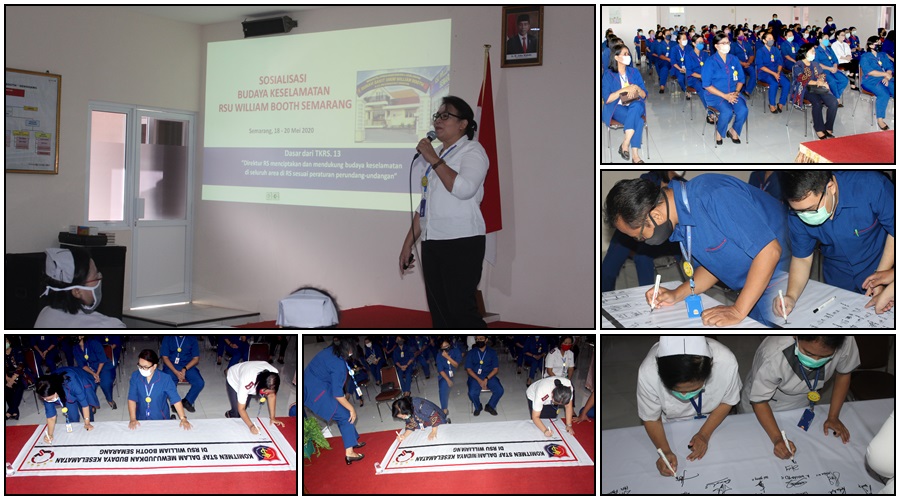 Kegiatan Sosialisasi Budaya Keselamatan di lingkungan RSU. WilliamBooth Semarang, para civitas rumah sakit diberikan pengertian dan penjelasan tentang Budaya Keselamatan, acara dilanjutkan dengan penandatanganan Komitmen bersama untuk melaksanakan Budaya Keselamatan Seluruh Karyawan dilingkungan rumah sakit.